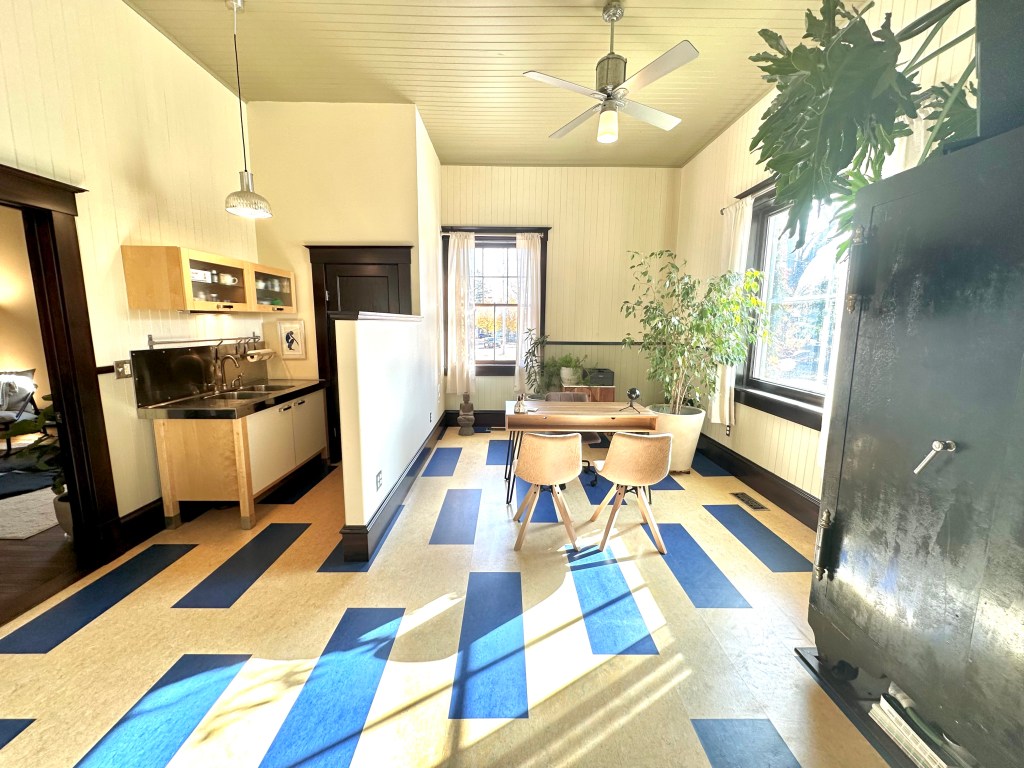 • Two-Room Layout: The suite includes a front office (17’7” x 15’3”) with a historical antique safe for unique storage needs, plus a convenient sink and 1/4 bath. The back office (17’7” x 15’7”) boasts the original tobacco scale built into the floor, preserving a piece of history.